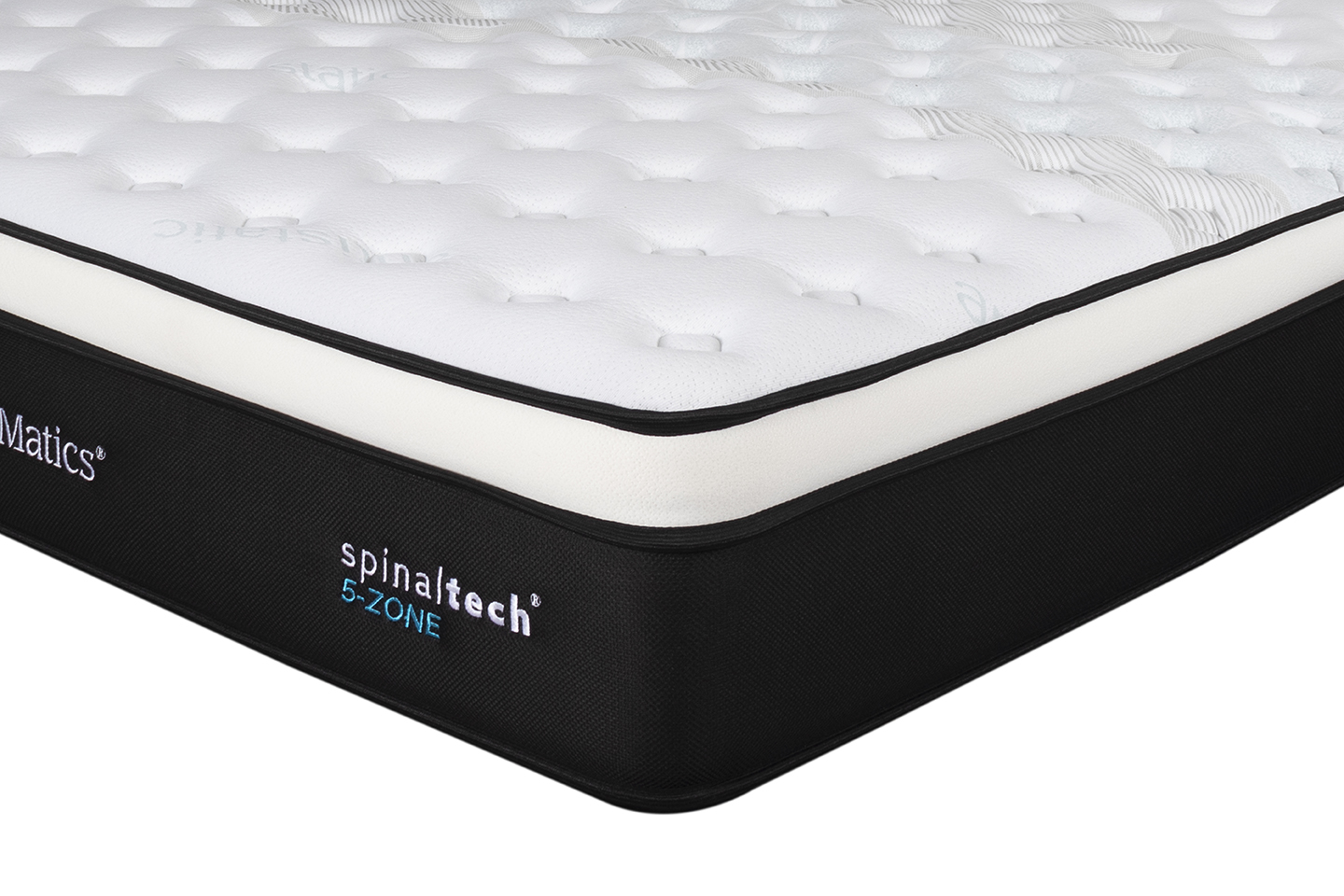 The mattress foundation features a parallel pocketed spring structure combined with SpinalTech Spring Technology 5 Zone, providing targeted ergonomic support across essential body areas to encourage healthy spinal alignment and muscular relaxation.