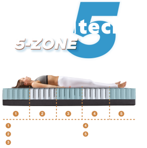 This system provides excellent support, especially in the lumbar zone, resulting in a more balanced body support. It is suitable for back and side sleepers, or a combination of both.